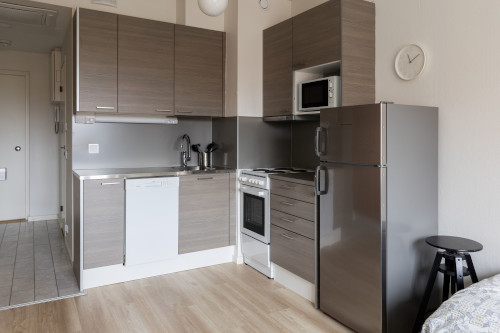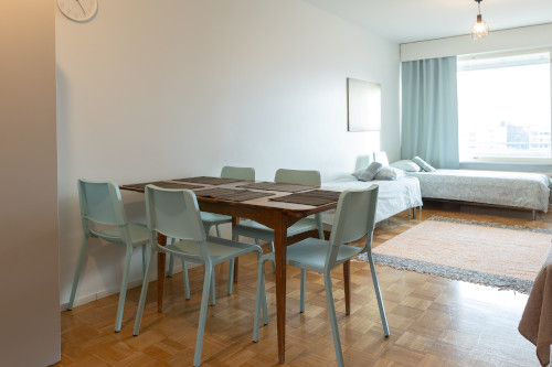 Tämän kompaktin yksiön löydät aivan linja-autoaseman tuntumasta. Asunto on kalustettu kahdelle ja sijaitsee hissitalon neljännessä kerroksessa. Ilmastointi huolehtii kesällä viilennyksestä.